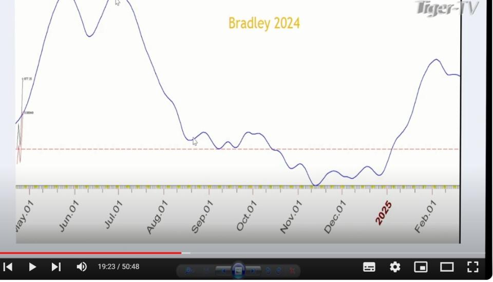 Am Wochenende wurden der 11.9.2024 und der 3.10.2024 als Zeitziele für einen Tiefpunkt genannt. Bei der aktuellen Konstellation ist es ratsam, “Zeitzielbereiche” und “Kursbereiche” für die Prognose eines Tiefpunktes heranzuziehen. Ein Tiefpunkt kann zwischen dem 29.8.2024 bis zum 23.9.2024 (Mittel am 11.9.2024) und 23.9.2024 bis zum 15.101.2024 (Mittel am 3.10.2024) im Kursbereich von 17.003 Punkten bis 16.345 Punkten (Mittel bei 16.672 Punkten) erwartet werden. Generell wird beim Kursziel und Zeitziel jeweils das Mittel herangezogen.
